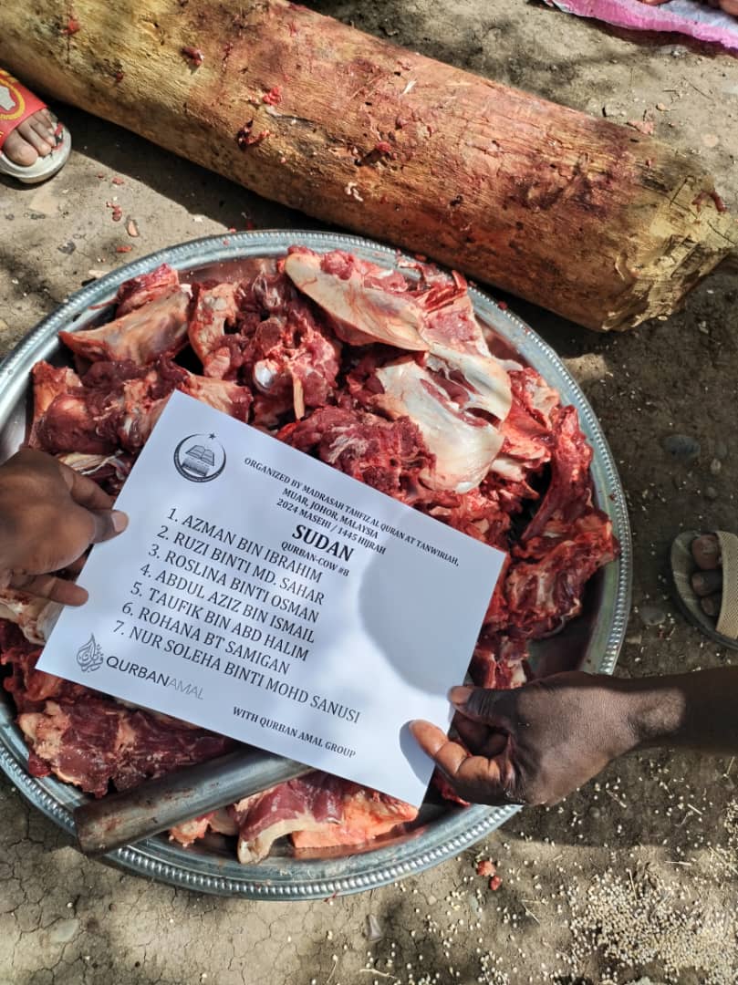 Daging aqiqah diagihkan kepada fakir miskin, pelajar tahfiz dan komuniti umat Islam yang memerlukan di dalam dan luar negara.